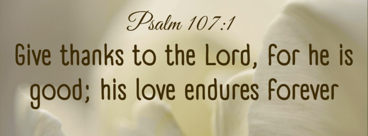 Give thanks to the Lord, for he is good; his love endures forever. - Psalm 107:1 (NIV)